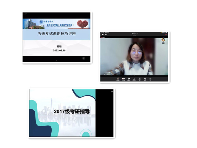 考研交流,为学子答疑解惑。考研初试成绩刚揭晓,各二级学院就开始摸排考研学生成绩情况,并进行整理分析。为提升学生复试成功率,护理学院、精神卫生学院、口腔医学院、管理学院等多个二级学院组织召开考研复试指导交流会,从复试前专业知识准备、自荐信撰写、联系导师,线上复试时环境选择、面试技巧,调剂信息收集及填报等方面进行了耐心细致地讲解。