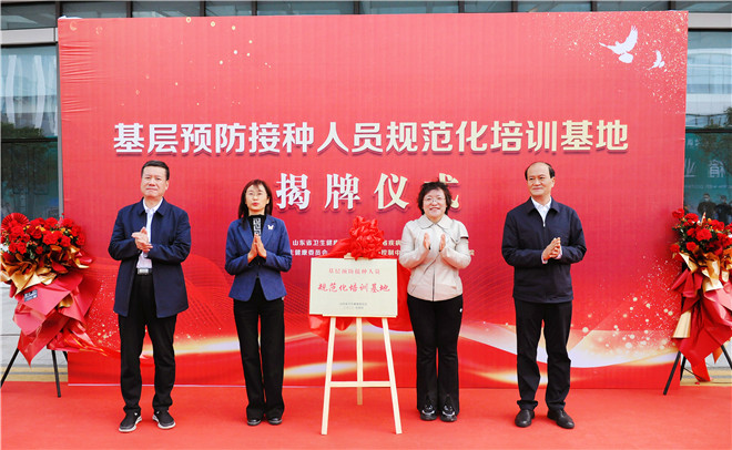 4月25日,“基层预防接种人员规范化培训基地”揭牌仪式在我校附属医院举行。山东省卫健委党组成员、副主任盖英群,山东省卫健委疾控处处长、一级调研员陈国锋,山东省委重大疾病和传染病防治工作领导小组办公室疫情研判组组长、省疾控中心党委委员王燕,山东省卫健委疾控处副处长孟君,济宁市卫健委党组书记、主任张公迁,党组副书记、市疾控中心党委书记仲曙光,党委副书记、主任梁玉民,任城区副区长宋振华,任城区卫健局党委副书记、区疾控中心主任华茜等参加揭牌仪式。仪式由学校党委委员、副院长,附属医院院长甘立军主持。
