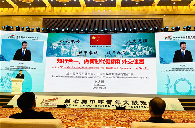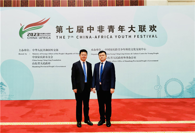 近日,第七届中非青年大联欢山东行欢迎仪式暨中非青年对话会在山东济南举行。山东省副省长邓云锋、外交部非洲司副司长张斌、全非学联主席瓦尼·阿利乌·贾西等出席欢迎仪式并讲话,来自我国和非洲国家的150余名青年参加活动。我校附属医院援非专家孙占国(第16批)、靳猛(第15批)受邀参加活动,共话构建中非命运共同体中的青年担当。