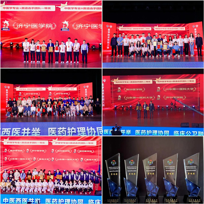 5月6日至7日,2023年山东省大学生医学技术技能大赛在青岛大学举行。学校党委委员、副院长于景科带队,选派12支代表队、52名学生参加了全部赛道的比赛。其中,中医学专业赛道两个代表队同获选手团队一等奖,护理学专业赛道A队和B队分获选手团队一等奖和二等奖,临床医学专业赛道B队获选手团队二等奖,预防医学专业赛道两个代表队同获选手团队二等奖,药学专业赛道两个代表队同获选手团队二等奖,我校参赛选手获实践操作单项奖13人次。