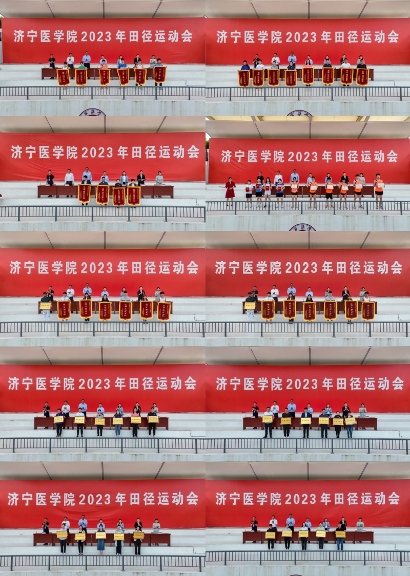 闭幕式上,大会总裁判长郗鹏宣布了比赛成绩。基础医学院(临床医学专业本科生)代表队、护理学院代表队、中西医结合学院代表队、第二临床医学院代表队、康复医学院代表队、精神卫生学院代表队获学生组混合团体总分前六名;机关党委分工会代表队、基础医学院分工会代表队、法医学与医学检验学院分工会代表队、公共卫生学院分工会代表队、康复医学院分工会代表队、后勤管理处分工会代表队获教工组混合团体总分前六名;济宁医学院附属医院代表队、济宁市第一人民医院代表队、邹城市人民医院代表队、济宁市第二人民医院代表队获得医院组混合团体前四名;范长一、刘婉菲、栾仁杰、宋正、王东明、孙一昕、庄淇、张宇彤、韩莹、陈莹莹获学生组“十佳运动员”称号;基础医学院、公共卫生学院、精神卫生学院、法医学与医学检验学院、中西医结合学院、康复医学院获“精神文明代表队”称号;国际教育学院代表队获“圣地友谊奖”;机关党委分工会等8个代表队获教工组优秀组织奖;济宁医学院附属医院等4个代表队获医院组优秀组织奖;医药工程学院分工会等7个代表队获教工组体育道德风尚奖;曲阜市中心医院等3个代表队获医院组体育道德风尚奖。